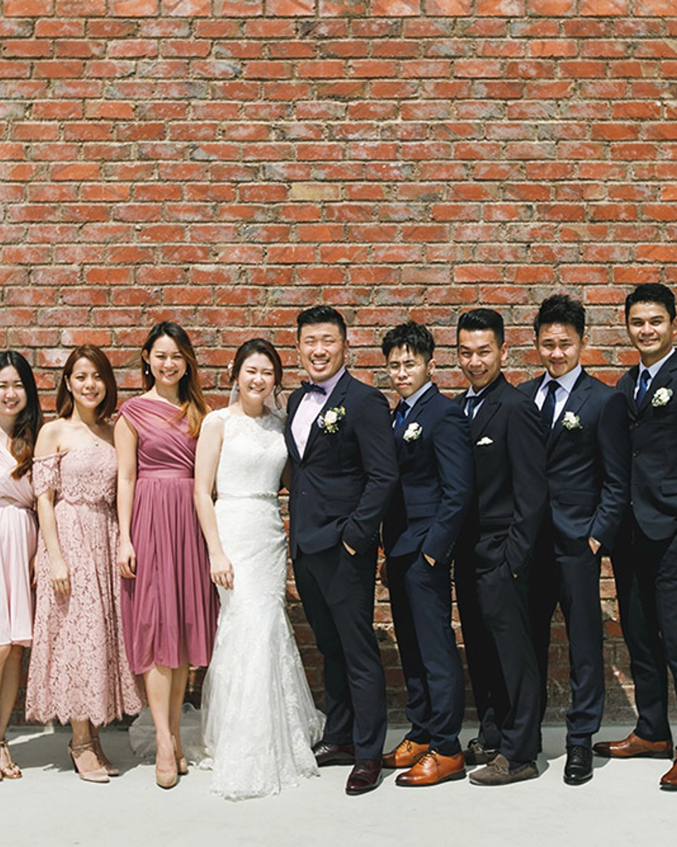 Photography by CJ Photography / Venue Rosa Malacca Hotel / Number of Guests 60 / Bridal Gown by Lusan Mandongus, Designer Bridal Room / Bride’s Shoes by Jimmy Choo / Hair and Makeup by Zen Makeup Artist / Jewellery by Tiffany & Co. / Groom’s Attire by Paul Smith / Wedding Bands by Rose & Crown Jewellers / Bridesmaids’ Dresses by ASOS / Groomsmen’s Attire by H&M / Flowers and Décor by Gabriet Art, LavieFlo Preserved Flowers / Wedding Cake by Root Patisserie Cafe / Catering by Bica & Co.