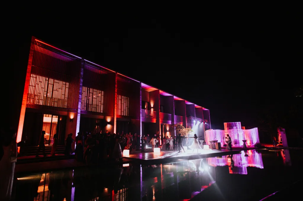 The planners at Lafs wedding event pulled off an amazing event within one month, having an eye for detail that comes with experience, they repurposed the white arch from the ceremony to an after-party scene using specialised lighting. A creative way to double up on wedding decor props.