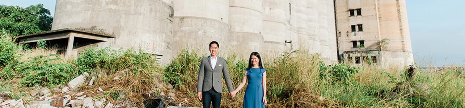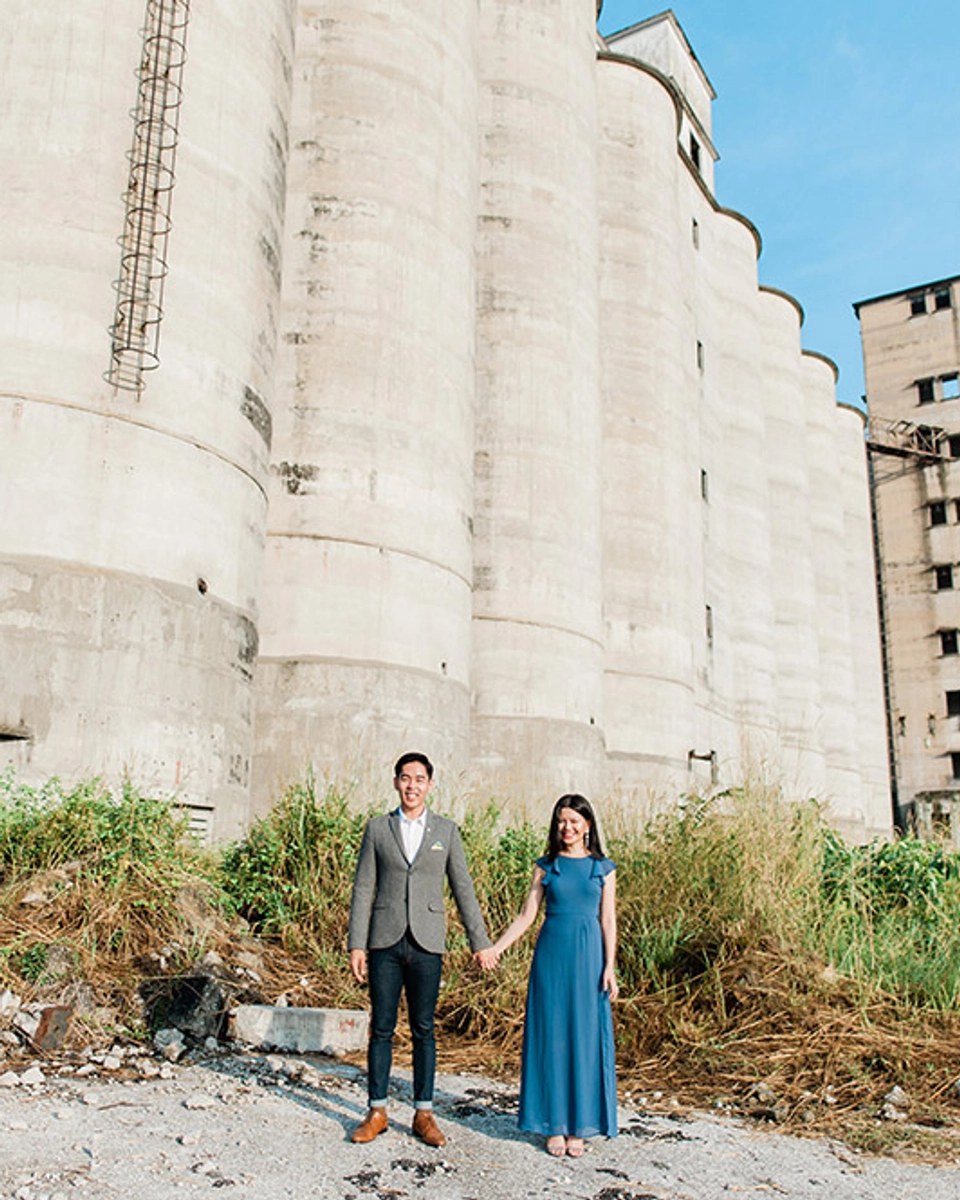The joy and sweetness of this couple’s relationship is palpable. Both dog lovers, they even included their furbaby, “Jamie the Goldie”, in their engagement portraits. The bride-to-be is gorgeous in a blue chiffon cap-sleeved evening gown, while the future groom is dapper in jeans and a blue-grey blazer. Hand in hand, they strolled through the backyard of a factory, which injected their shoot with a raw and edgy vibe. Later, in more residential surroundings, they included shots with Jamie, who looked so endearing with that green scarf around her neck! Thank you, Bitesize Visuals for these lovely memories.