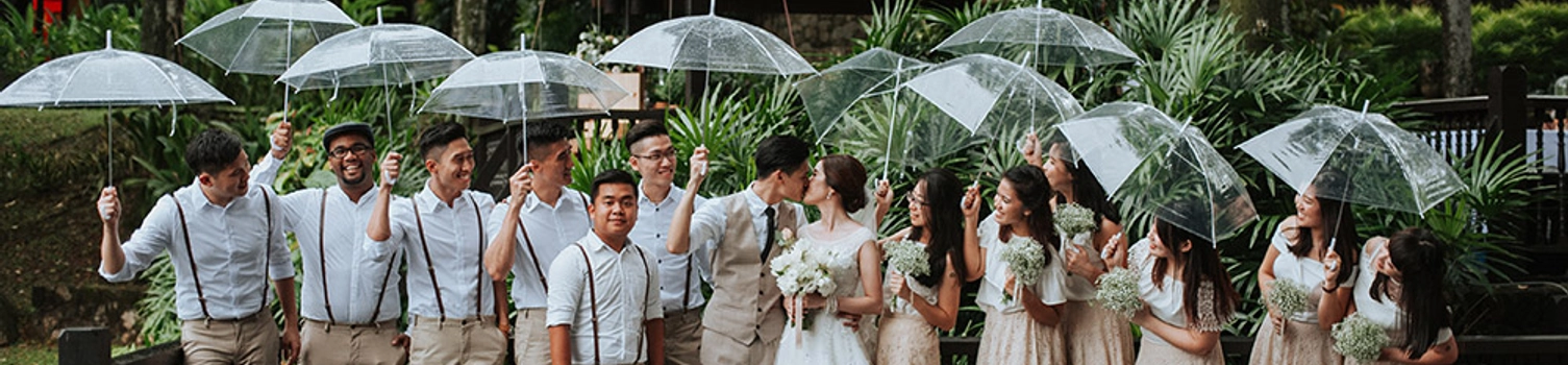 Surprisingly, one of the most memorable highlights for the couple was the rain, which fell an hour before the ceremony and left the temperature perfectly cool. There was even a rainbow! When it started to drizzle again during and throughout the ceremony, the newlyweds rolled out Plan B – transparent umbrellas! “Guests said they had a grand time and that the rain made it even more magical,” said Jeanne.