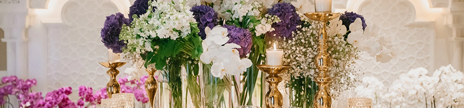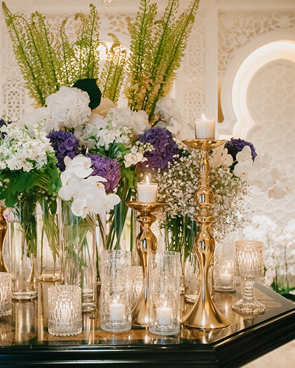 Purple and blue is already a killer colour combination, pair that with gold accents and gilded accessories and you’ve got a truly breathtaking sight to behold. Candles, crystal and dramatic lace completed this stunningly romantic setup, and there was no shortage of flowers and dreamy drapery along the walls and ceilings. Thank you for this beautiful set, Wishing Tree!