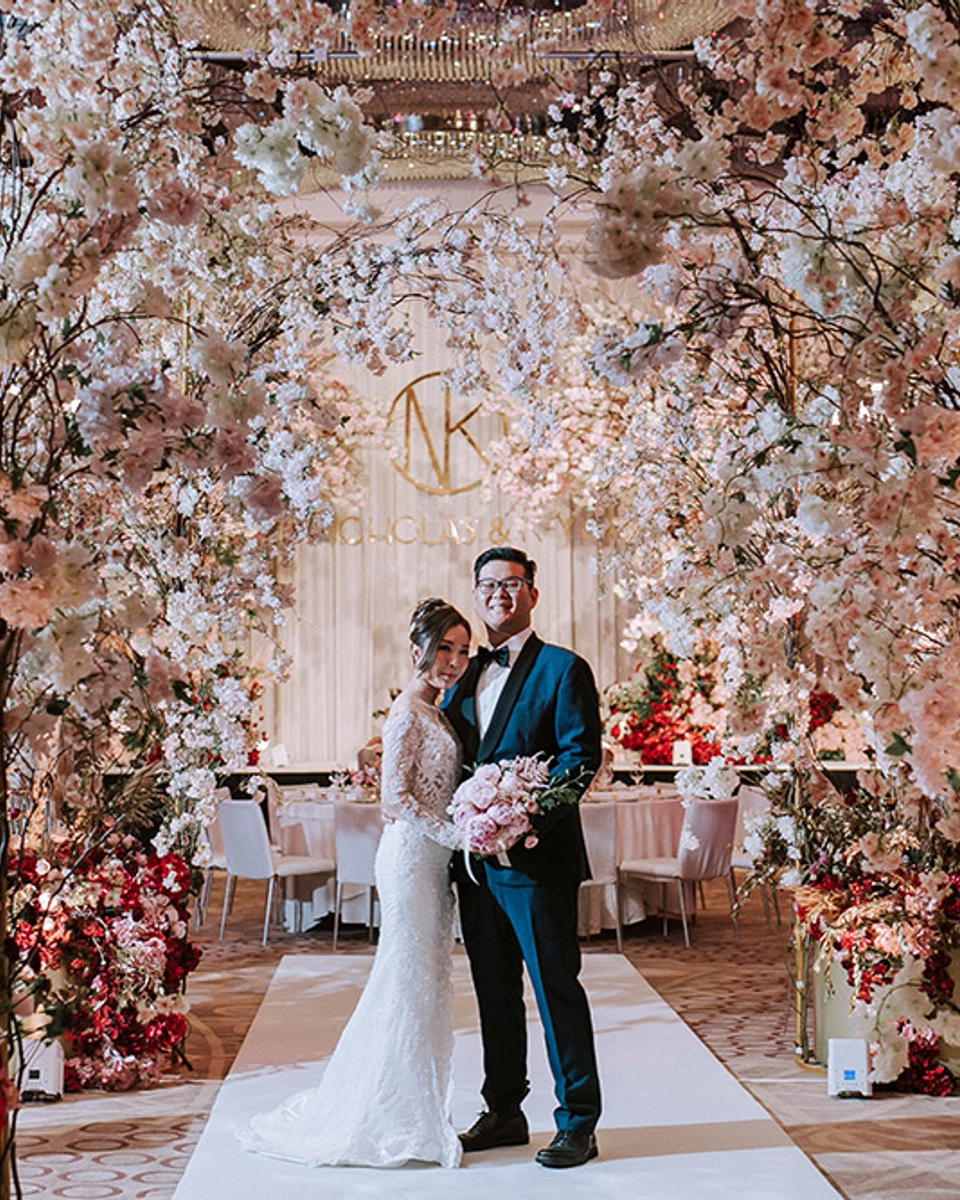K-Yin: “The most memorable moment was when I walked into the ballroom and saw the decorations set up so beautifully, exactly like how we had imagined. Walking down the aisle and exchanging vows with my husband under the magnificent cherry blossom trees were definitely like a dream come true.