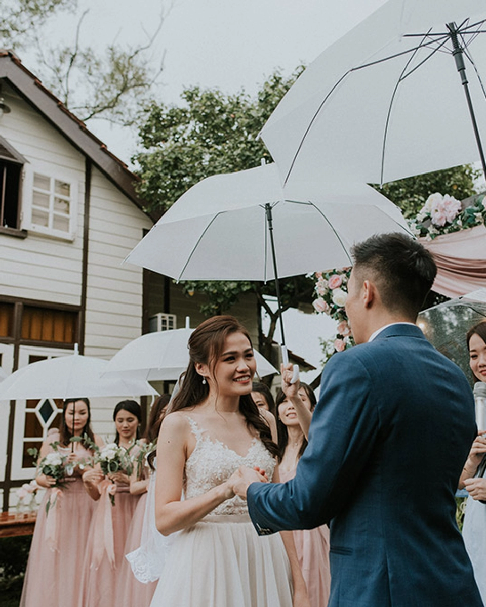 Despite the downpour, England House in Nibong Tebal, Penang, proved to be the best wedding venue for this couple who had wanted a rustic, blush-themed celebration. Even the garden was perfect! Thank you for these amazing photos, Twins Photography.