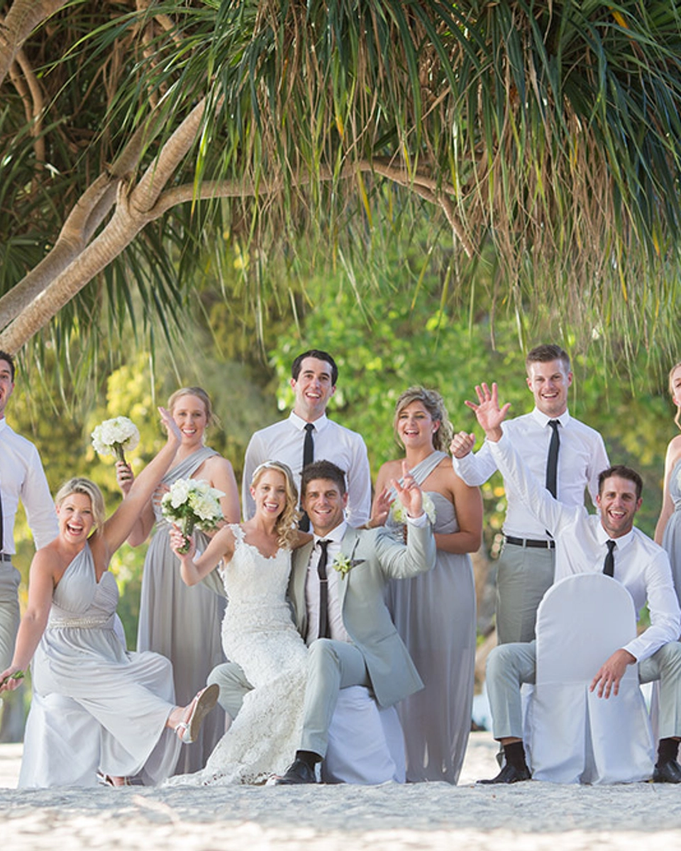 “I wanted a relaxed and elegant tropical island wedding. For our theme, we chose a crisp white colour with contrasting soft grey tones to complement the fresh green foliage and spectacular natural environment. We wanted the stunning tropical setting to be the star of the show. The location was our inspiration, and the aim of our style was to enhance the natural beauty of the island and really make it pop!
