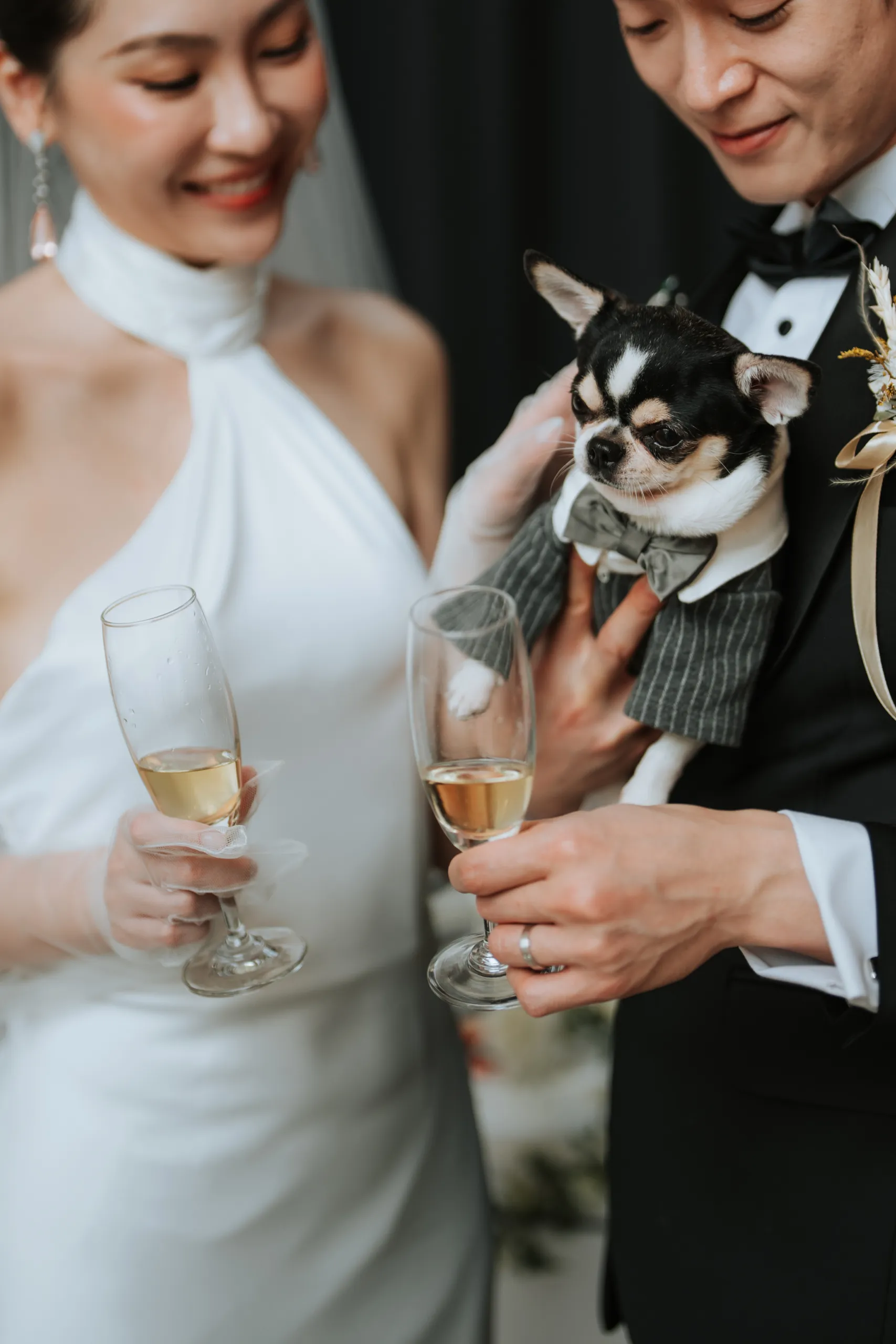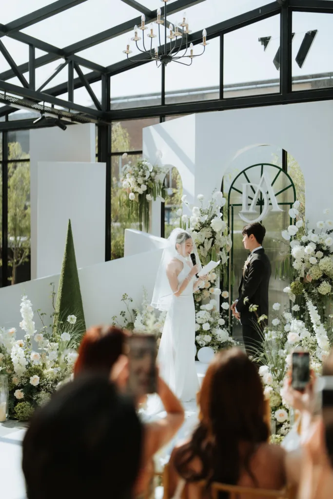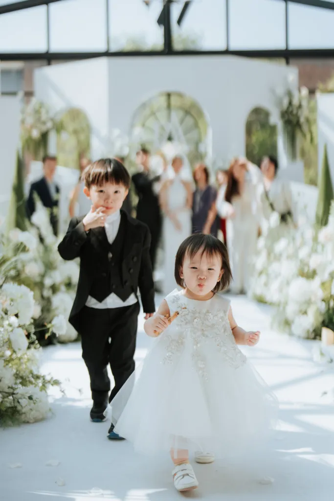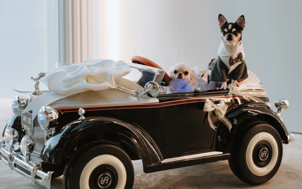 In a touching pre-ceremony moment, Anjoe shared an emotional first look with her parents, which added a layer of meaning to an already special day. Adding a whimsical touch, the couple’s dogs played an adorable role in the celebration. Dressed to impress, they made their entrance in a miniature vintage car adorned with a “Say I Do” license plate and a large white bow, stealing the show and melting hearts. The couple exchanged heartfelt vows in the luminous setting of W Factory, surrounded by their closest loved ones. Following the ceremony, guests were treated to a cozy luncheon. All in all, Daniel and Anjoe’s wedding was a testament to the importance of intentional planning and meaningful details.