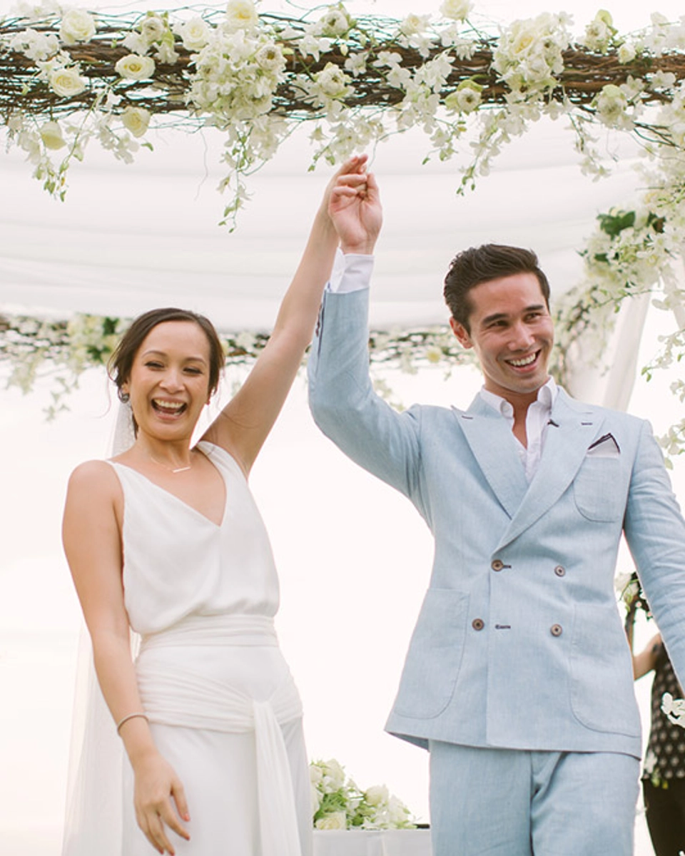 Photography by Nigel Lim Photography / Videography by Adrian Yap / Venue Paresa Resort, Phuket, Thailand / Number of Guests 70 / Bridal Gown by Delphine Manivet from The Mews, London / Bride’s Shoes by Burberry / Hair and Makeup by Lisa Allen (Phuket) / Groom’s Attire by Bespoke by Lee Baron / Wedding Bands by Dream Diamonds and Cartier / Bridesmaids’ Dresses by Zimmermann / Groomsmen’s Attire by Bespoke by Lee Baron / Wedding Favours by Etsy / Art and Stationery by Etsy