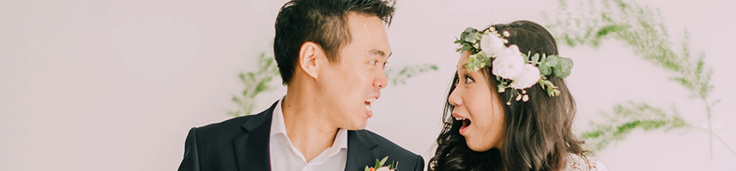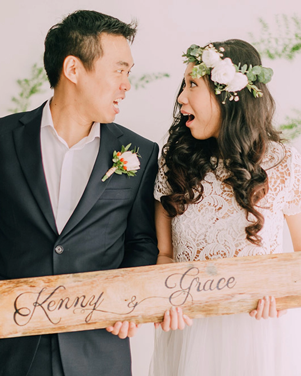 Bridal portraits often double as an announcement to let your friends and family know that you’re going to soon tie the knot, as well as an introduction to who you are as a couple. We love how Grace and Kenny had their bridal portraits done at home – no rules and at no cost! With the added chance to repurpose their décor items at their wedding, they went sweet with desserts and paper flowers, and whimsy and random with their fencing gear, all tied together with fresh flowers, wooden decorative elements, and so much joy and laughter. Thanks to hellojanelee for these incredibly sweet bridal portraits.
