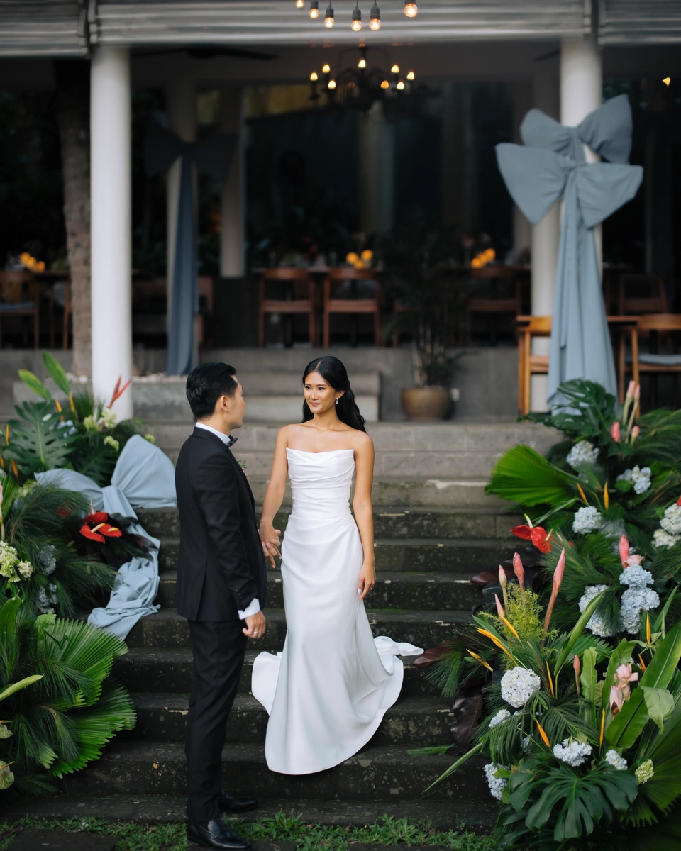 Every detail—from the personalised stationery featuring playful dog motifs to the lush floral installations framing the villa steps—spoke of a wedding rooted in intimacy and personal style. In choosing simplicity over spectacle, they created a rich celebration that felt deeply personal, stylishly effortless, and undeniably theirs.